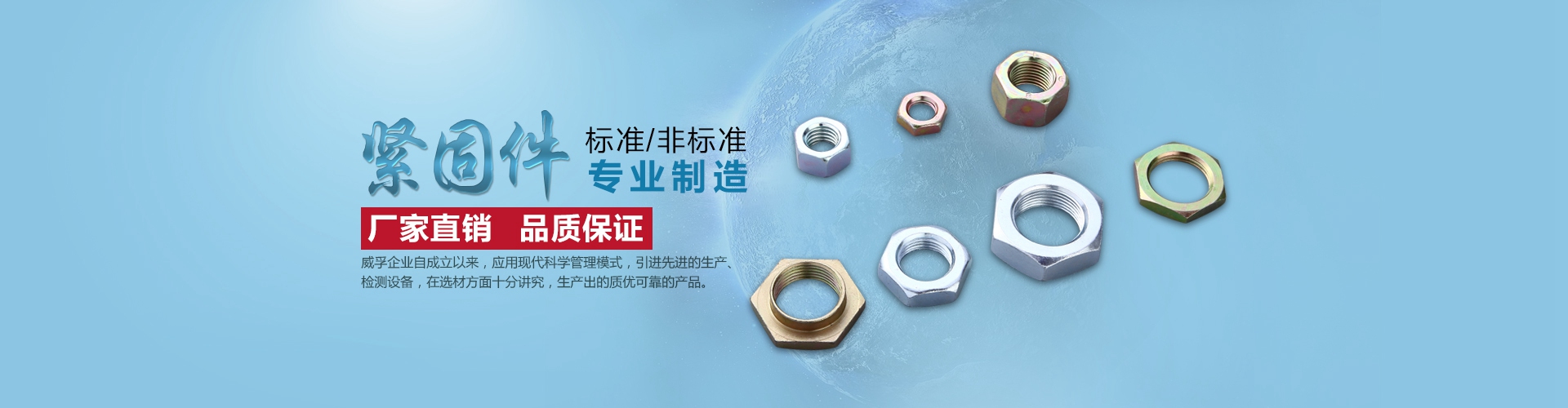 About us瑞安市威孚標(biāo)準(zhǔn)件有限公司企業(yè)創(chuàng)辦于1994年,是一家專(zhuān)業(yè)生產(chǎn)及加工標(biāo)準(zhǔn)件、高強(qiáng)度緊固件的廠(chǎng)家。主要的產(chǎn)品有防松螺母、鎖緊螺母、六角螺母、法蘭螺母、半圓鍵、尼龍防松螺母、自鎖螺母等。常見(jiàn)的其他附件有:螺絲、螺釘、墊圈、彈簧、墊片、連接件、彈墊、高強(qiáng)度螺栓。防松螺母的表面采用鍍鋅工藝,緊固功能強(qiáng)大,方便拆卸,固定好了就不會(huì)松動(dòng)。我們的緊固件擁有高強(qiáng)度的連接方法,緊固的結(jié)構(gòu)合理。標(biāo)準(zhǔn)件,采用新型的工藝及不銹鋼的材質(zhì),標(biāo)準(zhǔn)的規(guī)格,類(lèi)型很多,非常實(shí)用。我們的防松螺母、鎖緊螺母等產(chǎn)品支持定制,適用于:裝修、機(jī)械等生活及工作上、產(chǎn)品不僅質(zhì)量可靠,我們還提供了售前售后的服務(wù),為您解決相關(guān)緊固件產(chǎn)品問(wèn)題。