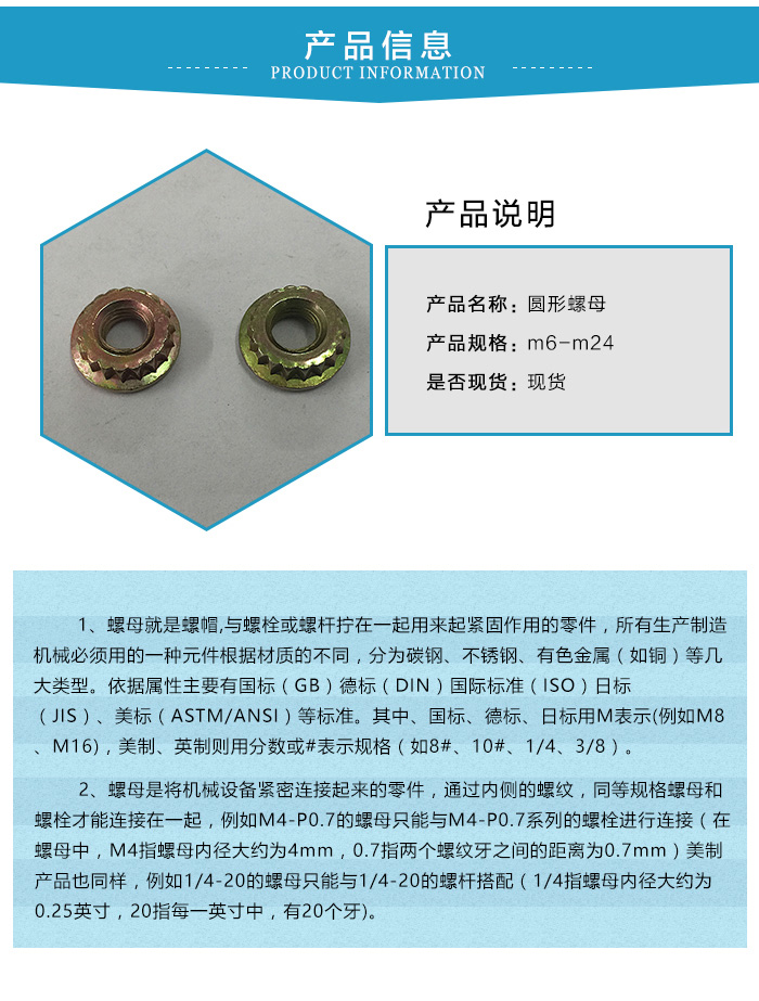 主營產(chǎn)品:防松螺母、鎖緊螺母