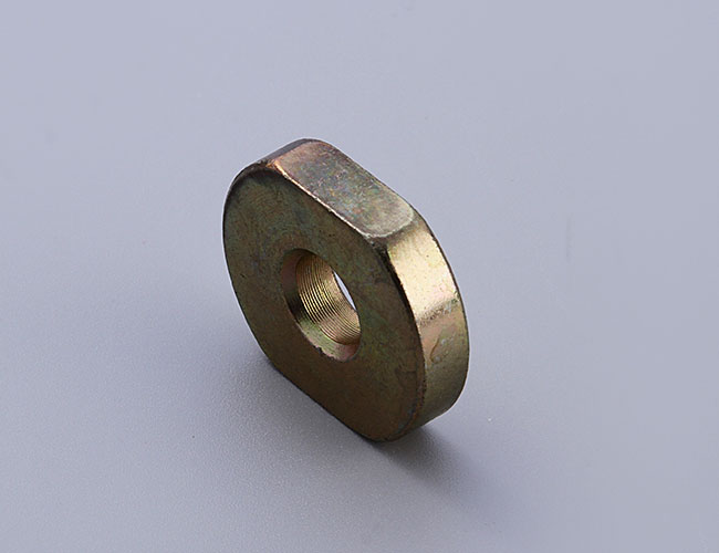 圓形臺階螺母常與圓形臺階螺母用止動墊圈配用,裝配時將墊圈內(nèi)舌插入軸上的槽內(nèi),而將墊圈的外舌嵌入圓形臺階螺母的槽內(nèi),螺母即被鎖緊。常作為滾動軸承的軸向固定。圓形臺階螺母用止動墊圈又稱止退墊圈,俗名王八墊,是一種防止圓形臺階螺母松動的墊圈