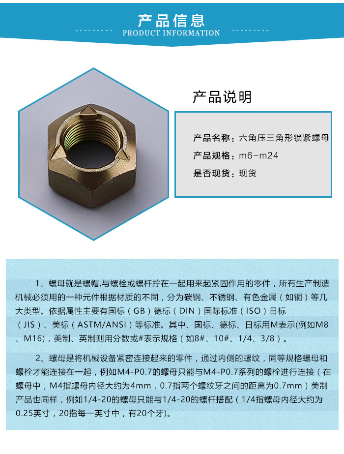 主營產(chǎn)品:防松螺母、鎖緊螺母