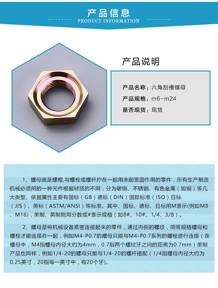 主營產(chǎn)品:防松螺母、鎖緊螺母